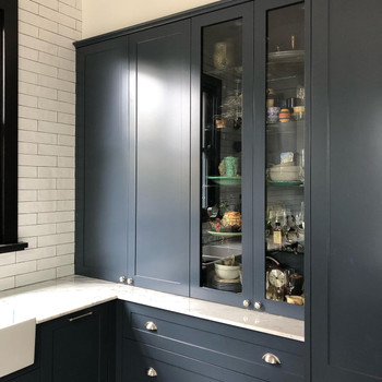 We designed a new, classic kitchen that spoke back to the original cornices & window frames. Incorporating a traditional shaker detail to the kitchen joinery, a large farm house sink, vintage lighting & classic nickel hardware.